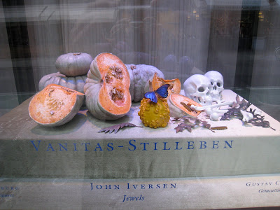 An inspiring to me window display I happened to walk by when visiting New York City in October…..made me even more excited to grow a few other unusual winter squash. This is a gallery that was displaying jewellery with squash!! wow…love it!