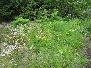 So in the meantime, I won’t fuss too much over the mess in this area of the garden. Look at all those dandelions going to seed!! Out of control. The forest wastes no time trying to reclaim it’s land…there are little fir and cedar trees sprouting up all over the place! I’m just going to have to wait ’til I have some help…..