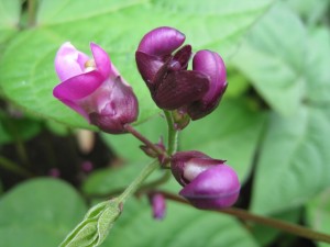 Unlike the green and yellow beans I’ve grown that have white and yellow flowers, these purple beans have purple flowers. They’re so pretty, I use them in flower arrangements….the little maturing beans are nice in bouquets too. They’re also lovely edible flowers in salads. And check it out! Before they open up and bloom the flower buds look like bean seeds.